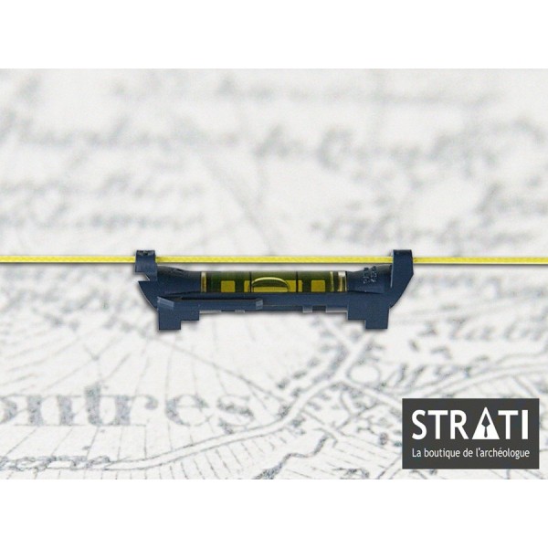 Nivell d'oli amb dos ganxos, per tal de sostenir-lo en un fil i amb quatre peus per utilitzar-lo com un nivell clàssic.