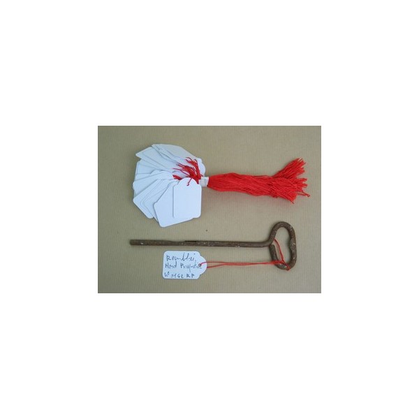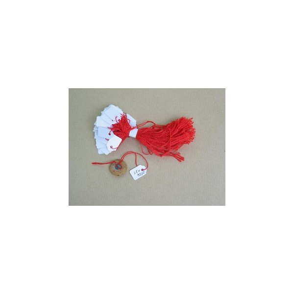 Etiqueta blanca con hilo blanco, para marcar pequeños objetos como cuentas de collar, anillos, fíbulas,...